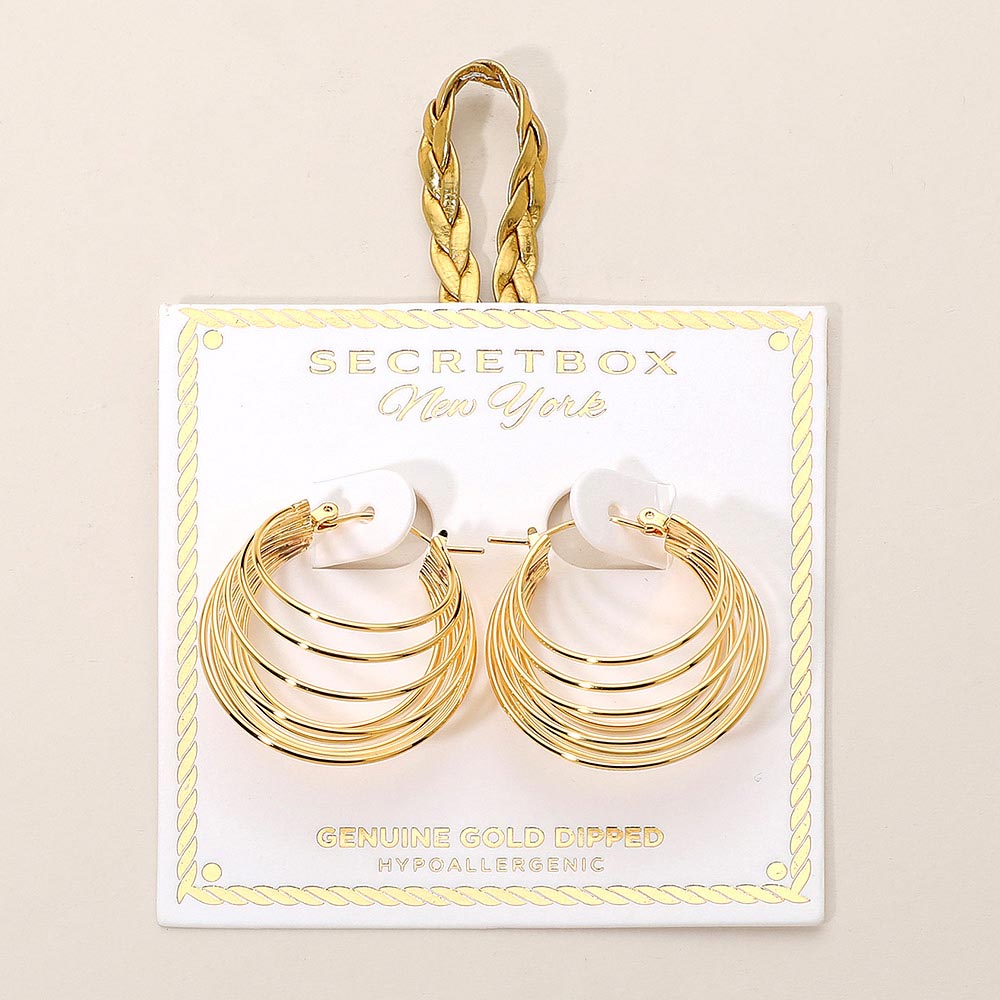 SECRET BOX_Genuine Gold Dipped Hypoallergenic Multi Wire Layered Pin Catch Hoop Earrings SECRET BOX_Genuine Gold Dipped Hypoallergenic Multi Wire Layered Pin Catch Hoop Earrings