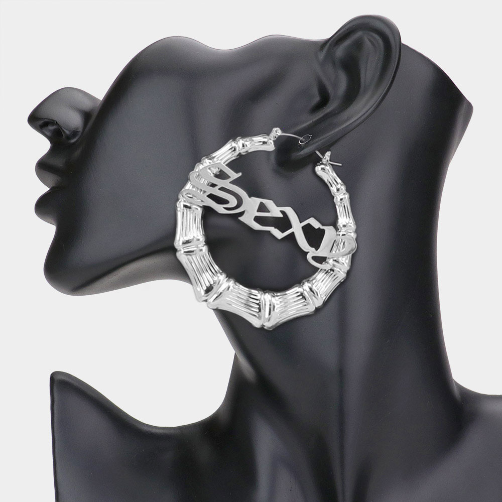 SEXY Metal Bamboo Hoop Message Pin Catch Earrings