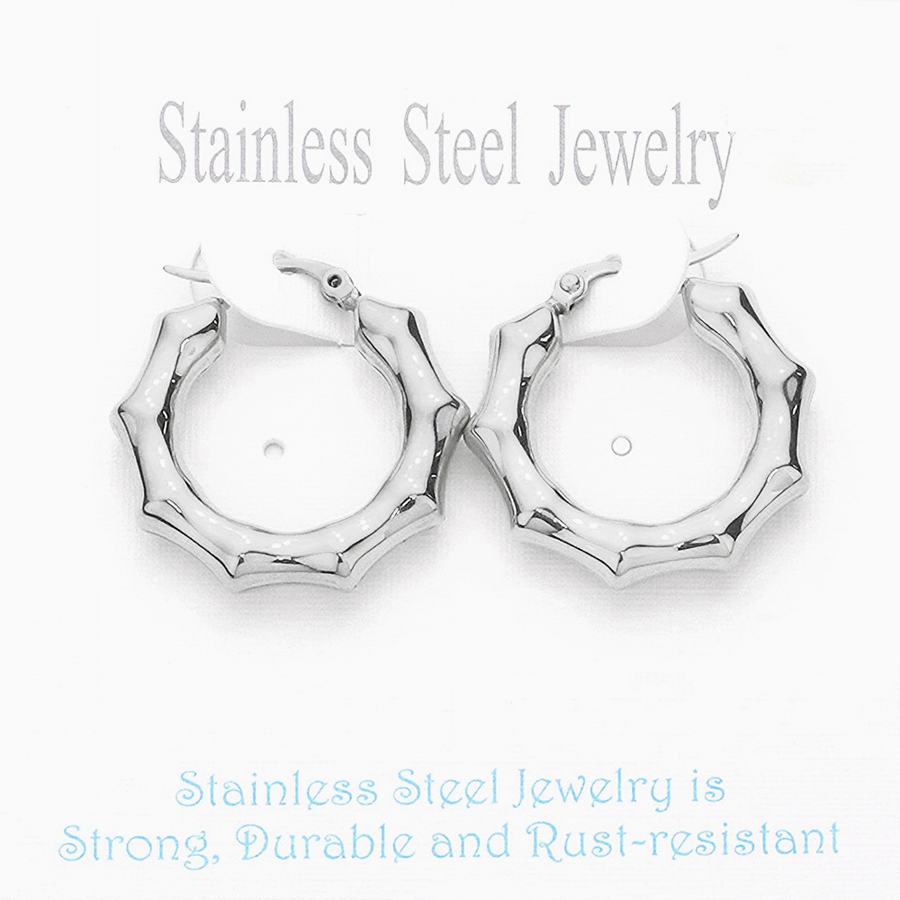 Stainless Steel 1.2 Inch Metal Bamboo Hoop Pin Catch Earrings