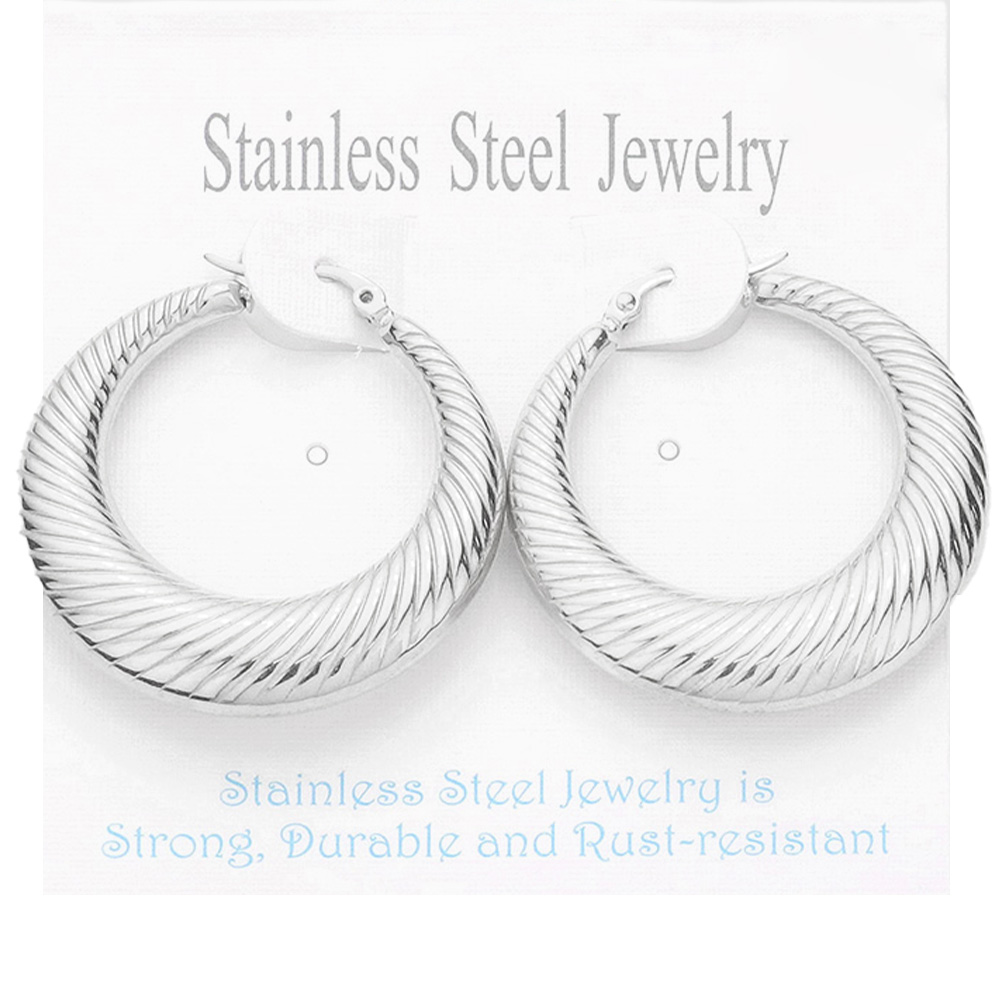 Stainless Steel Textured Hoop Pin Catch Earrings