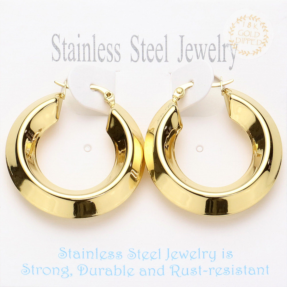 18K Gold Dipped Brass Metal Hammerd Open Oval Dangle Earrings