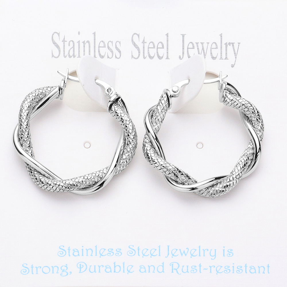 Stainless Steel Twisted Hoop Pin Catch Earrings