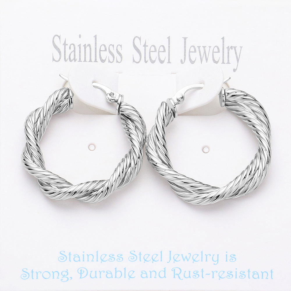 Stainless Steel Twisted Hoop Pin Catch Earrings
