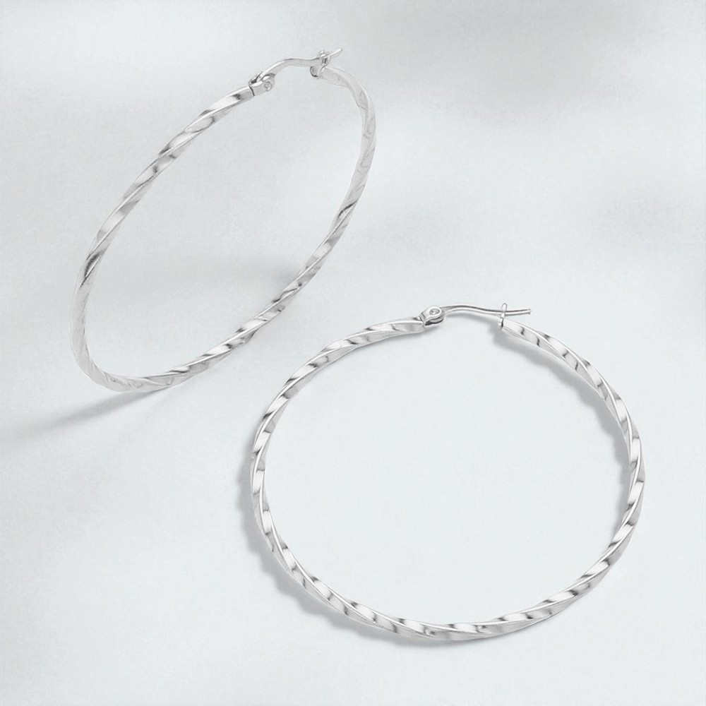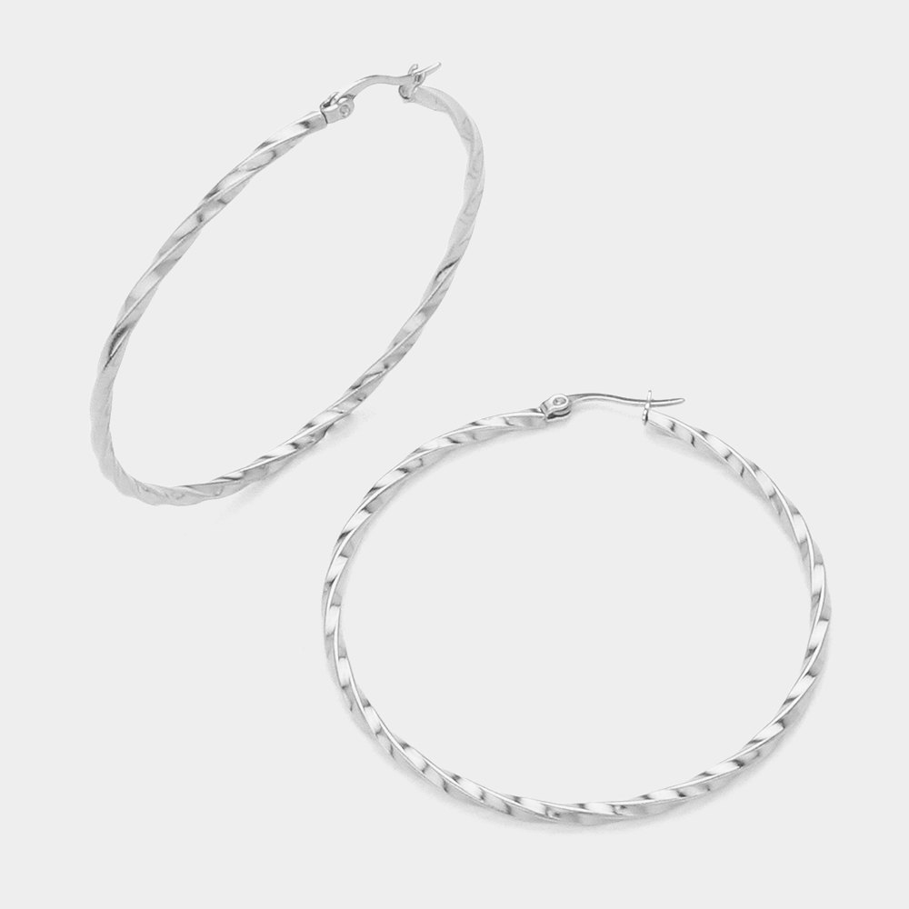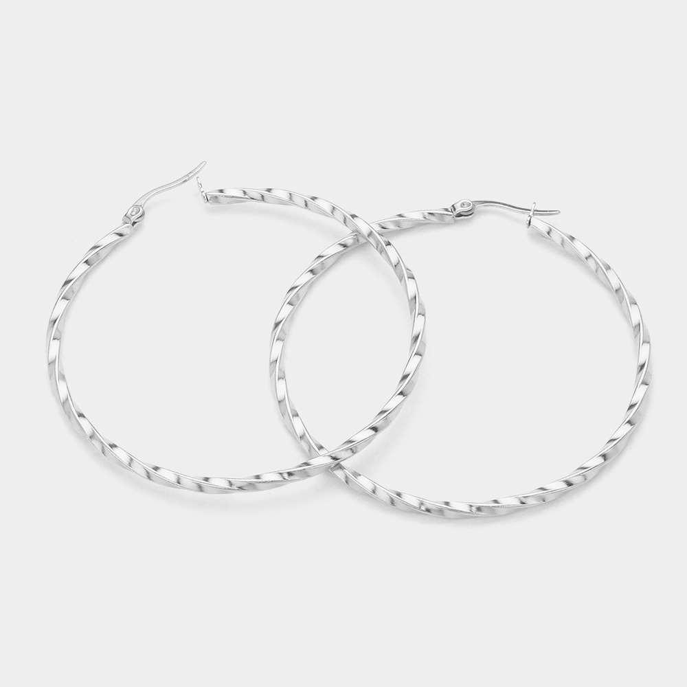 Stainless Steel Twisted Hoop Pin Catch Earrings