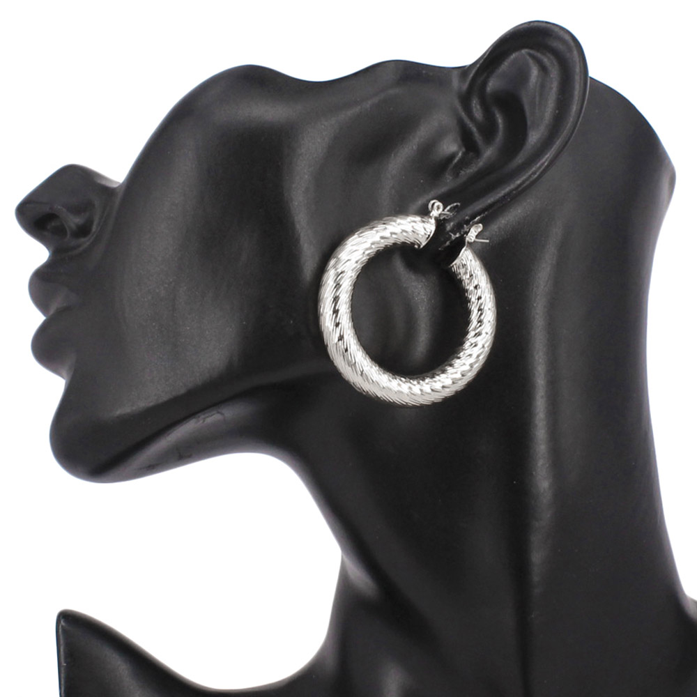 Textured Metal 3 Inch Hoop Pin Catch Earrings