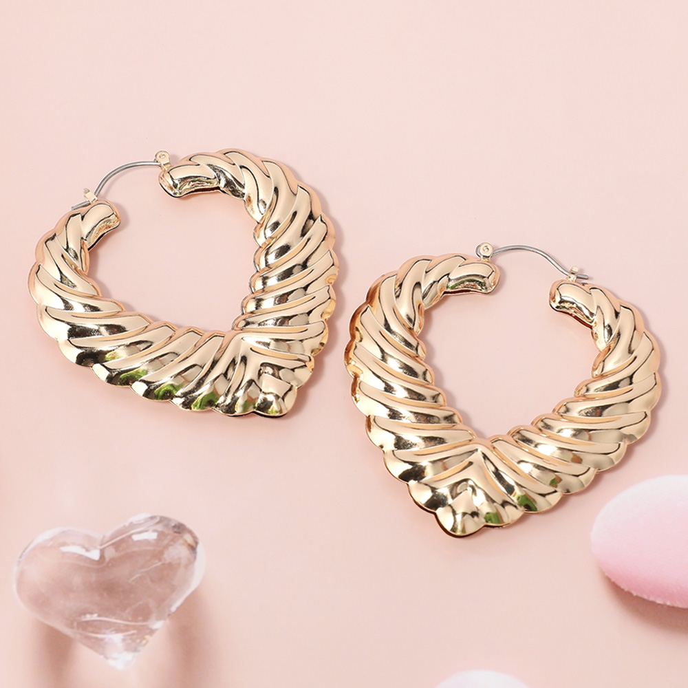 Textured Metal Heart Hoop Pin Catch Earrings