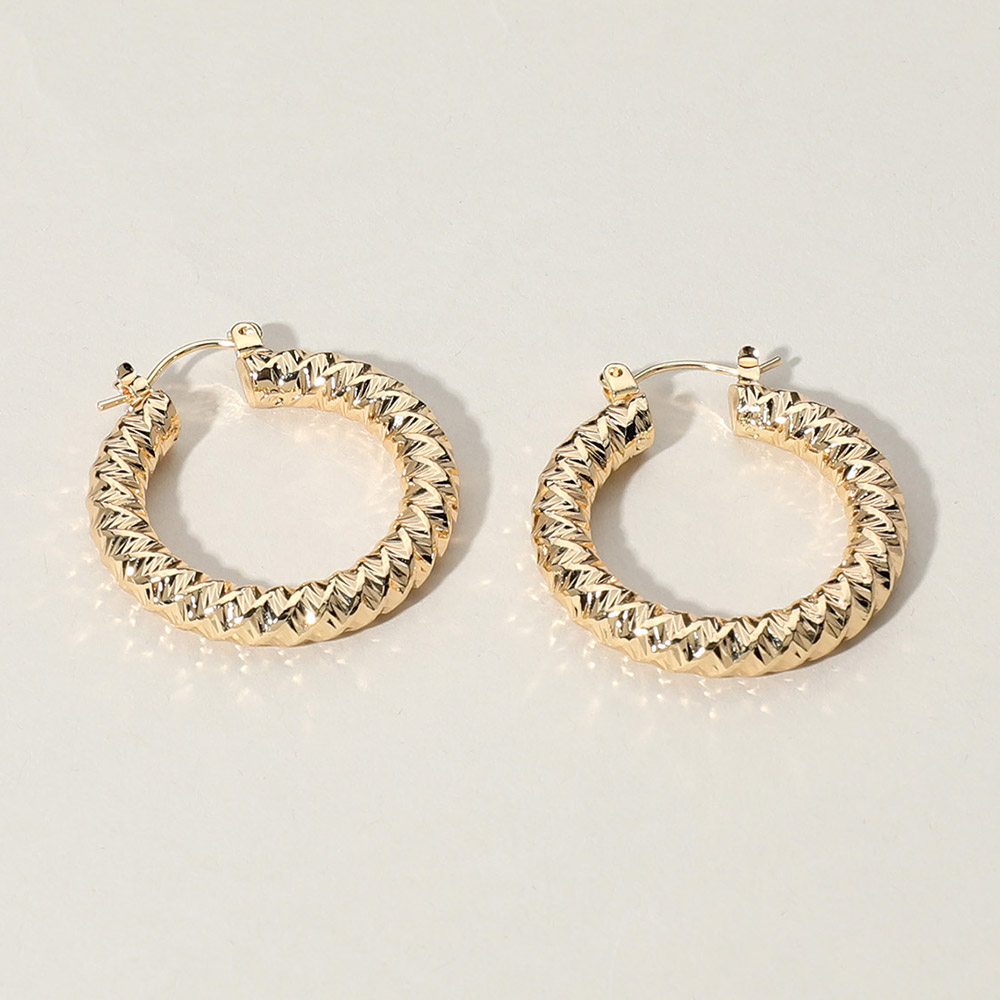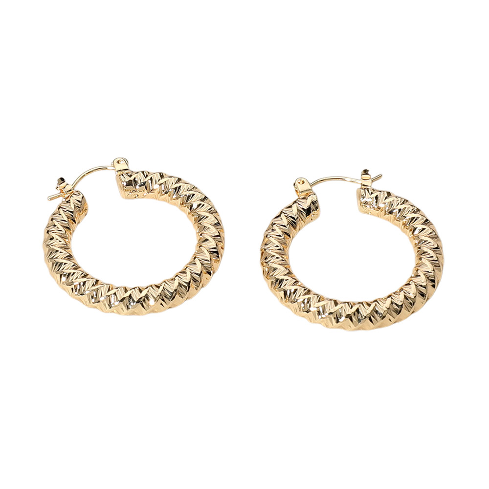 14K Gold Dipped Hypoallergenic Crisscross Pin Catch Hoop Earrings