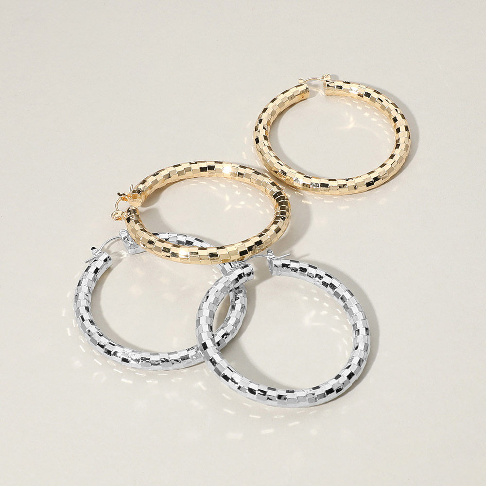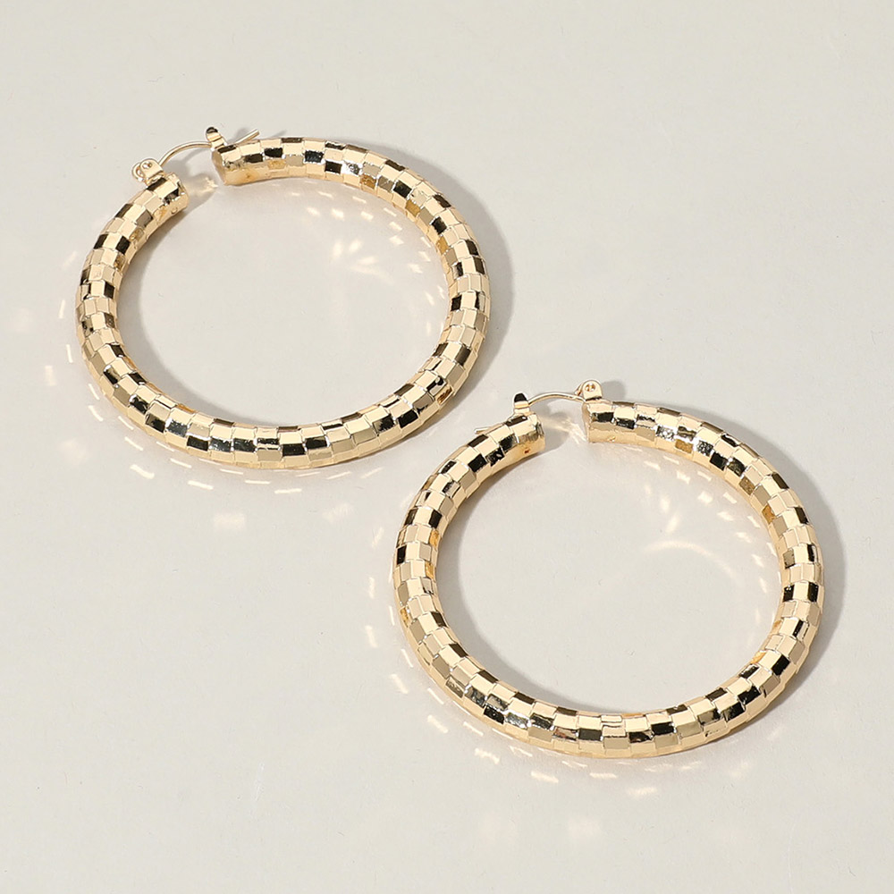 Details • Size : 2" X 2.1" • Pin Catch • Bold hoop earrings featuring a chunky silhouette with an all-over patterned texture. A statement accessory that adds modern edge and shine to any outfit. Comfortable snap-back closure, ideal for daily or evening wear. • Lead and Nickel Compliant