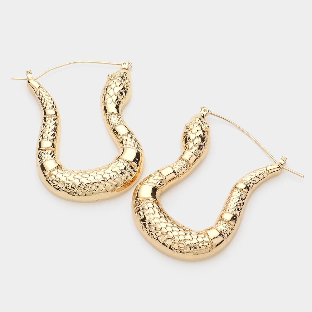 Textured Metal Snake Hoop Pin Catch Earrings