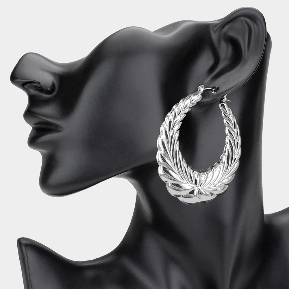 Textured Metal Teardrop Hoop Pin Catch Earrings