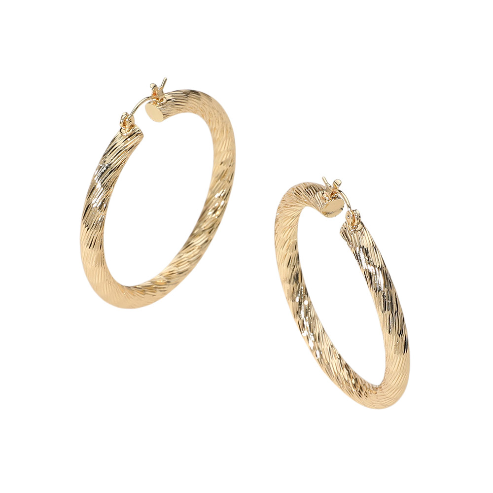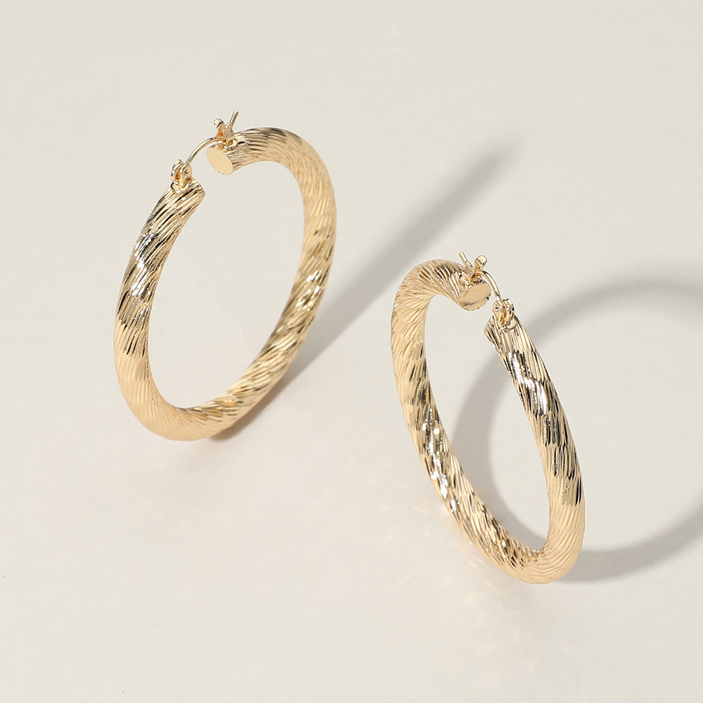 • Classic hoop earrings featuring a smooth, twisted surface and rounded shape. A versatile and stylish design perfect for everyday elegance.