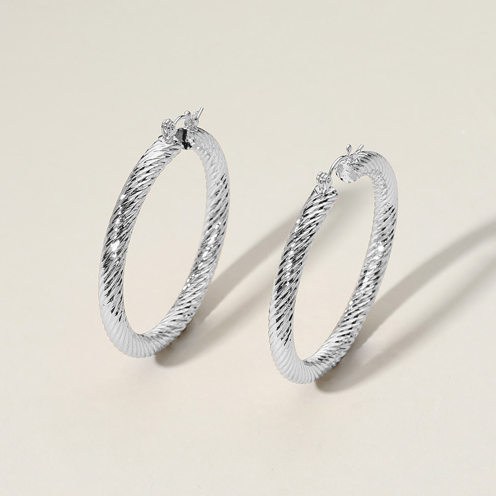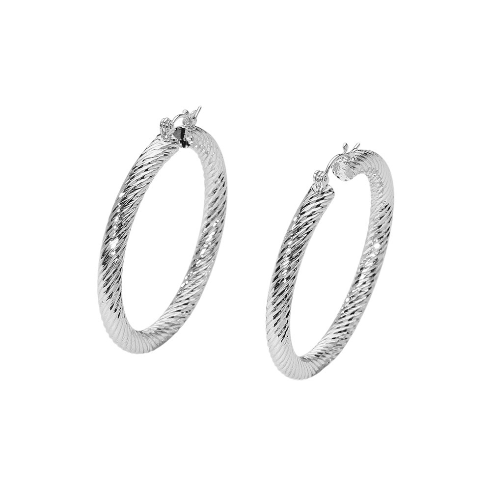 • Elegant round hoop earrings with a refined twisted texture and smooth curvature. A timeless accessory to enhance any outfit with subtle sophistication.