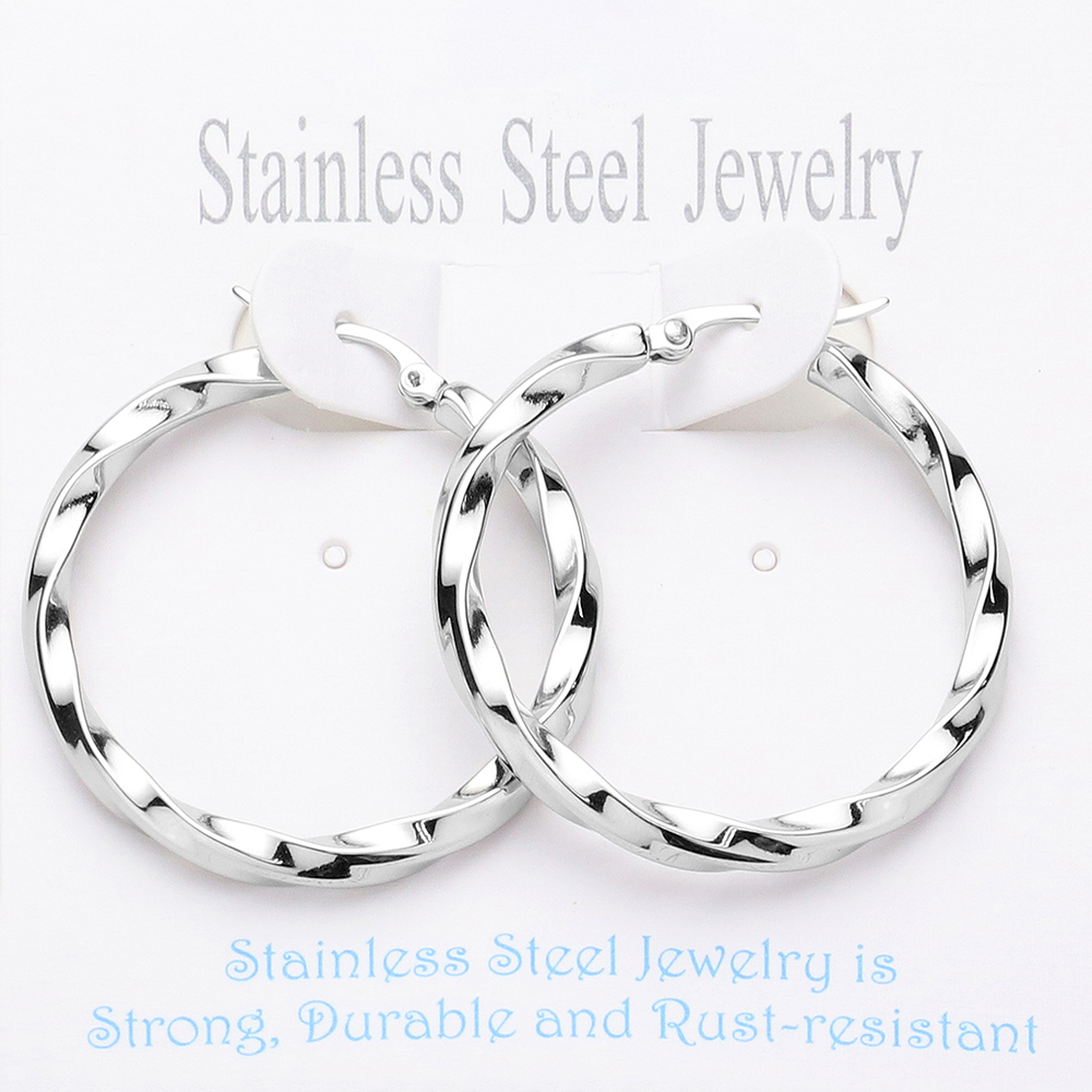 Twisted Stainless Steel Hoop Pin Catch Earrings