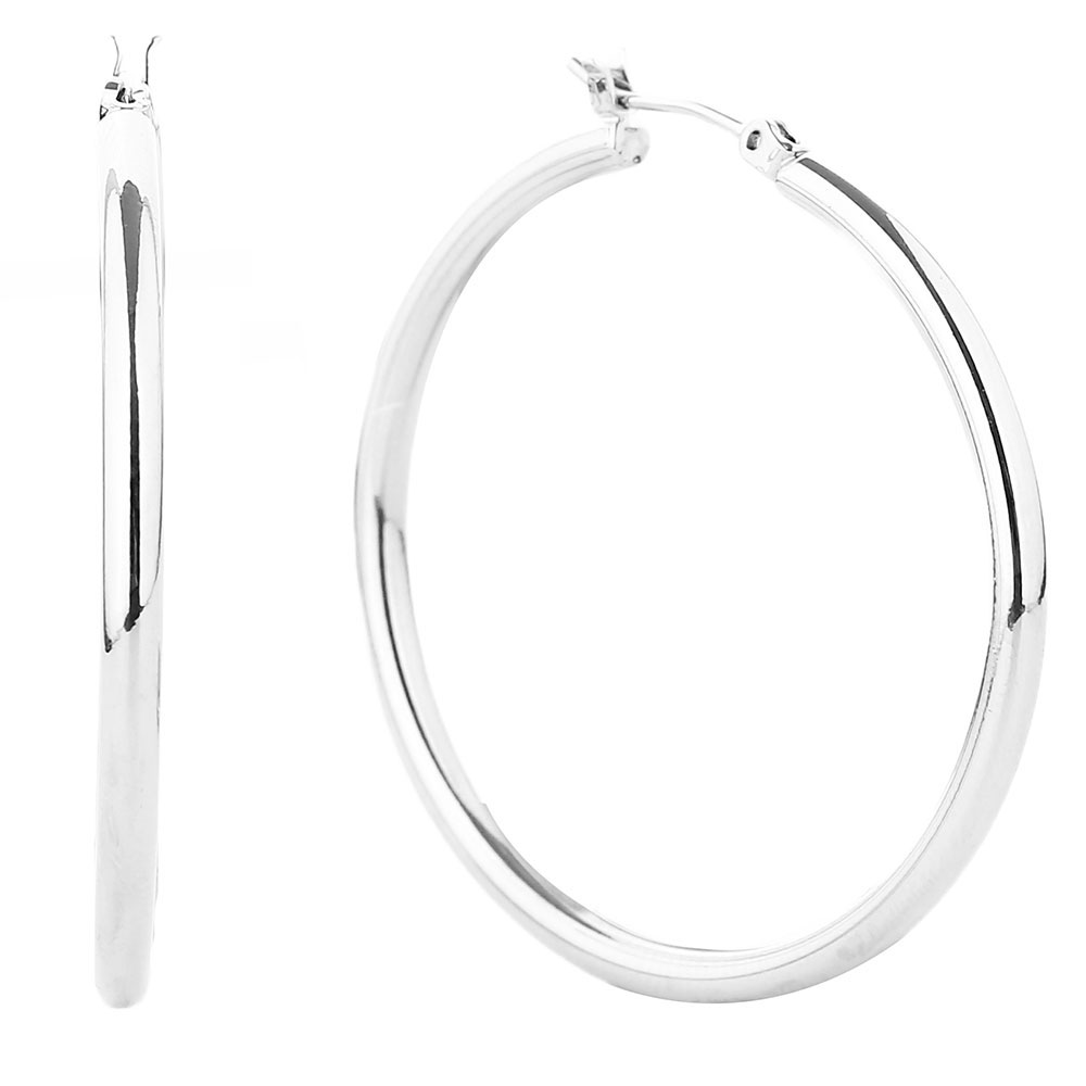 White Gold Dipped Classic Pin Catch Hoop Earrings White Gold Dipped Classic Pin Catch Hoop Earrings White Gold Dipped Classic Pin Catch Hoop Earrings
