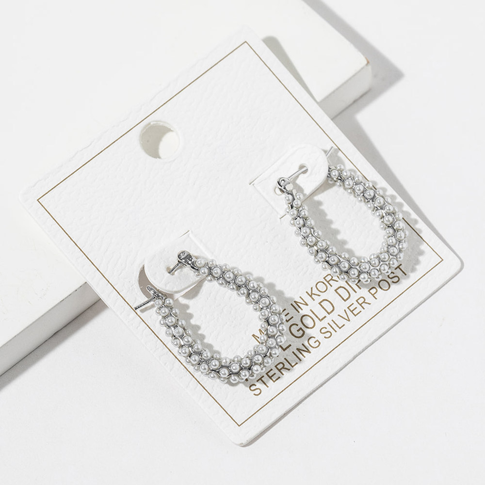 Details • Size : 0.75" X 1" • Pin Catch • Elegant pearl hoop stud earrings designed with a classic rounded silhouette and refined detailing. A timeless accessory for everyday wear, work outfits, special occasions, and gifting, these earrings offer understated sophistication, graceful style, and versatile appeal that complements both casual and dressy looks. • Gold Dipped • Lead and Nickel Compliant • Made In Korea • Sterling Silver Post