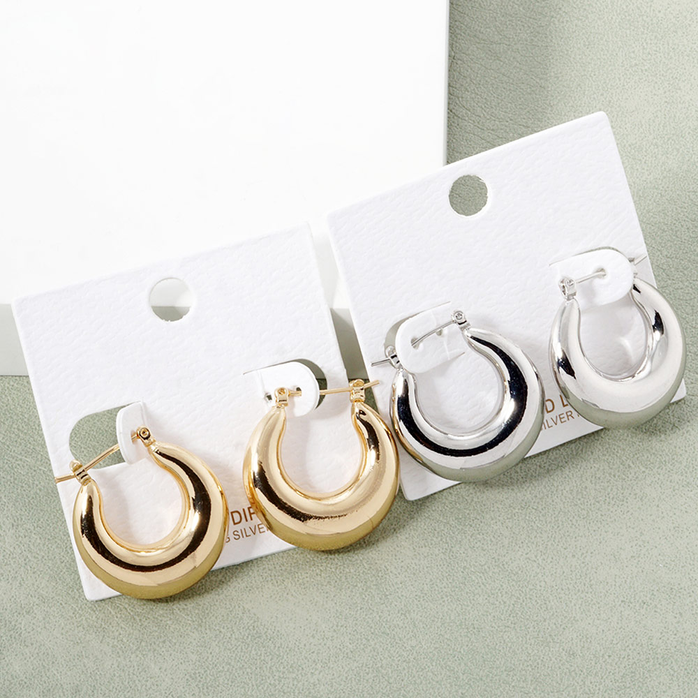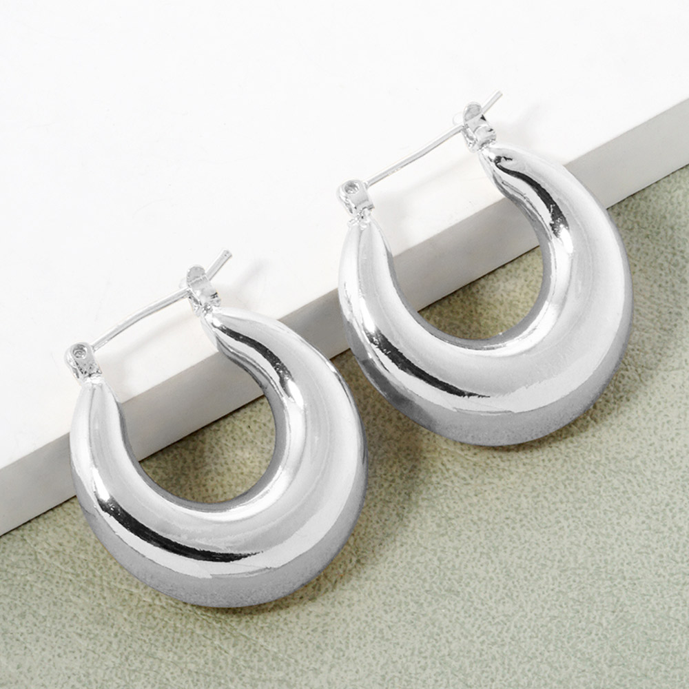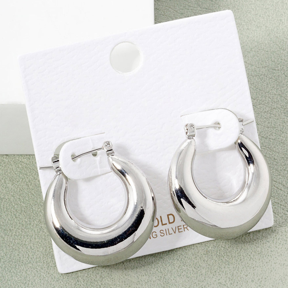 White Gold Dipped Puff Hoop Pin Catch Earrings