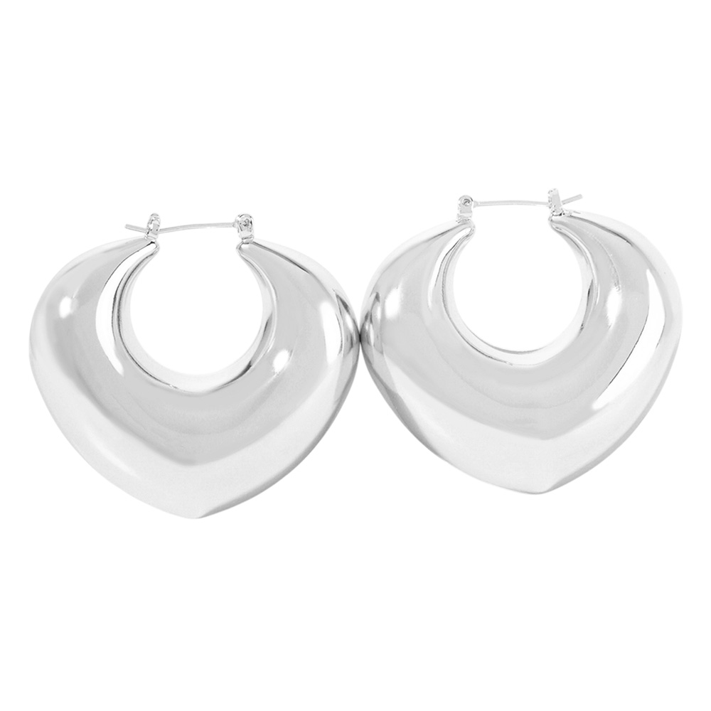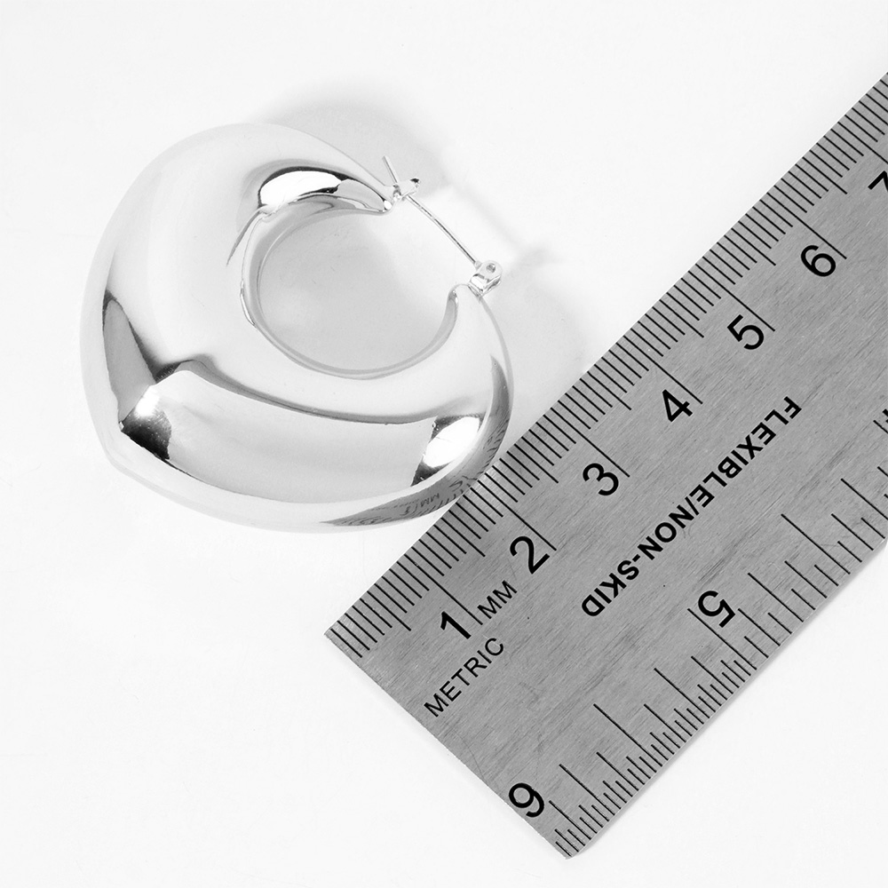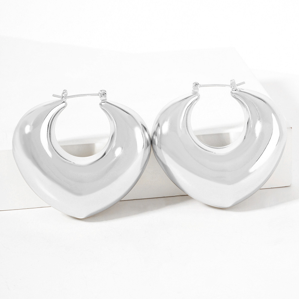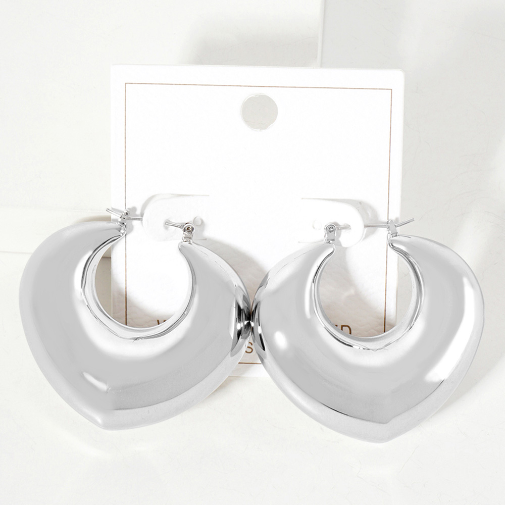White Gold Dipped Puffy Rhombus Pin Catch Hoop Earrings