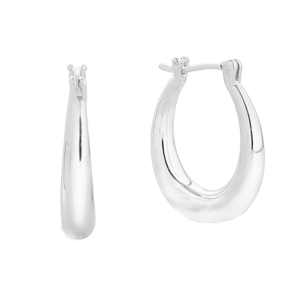 Details • Size : 0.8" X 0.9" • Pin Catch • Refined oval hoop earrings featuring a sculpted silhouette and smooth polished finish. A versatile statement piece that transitions seamlessly from everyday wear to evening occasions, adding timeless elegance to any outfit. • Brass • Gold Dipped • Hypoallergenic • Lead and Nickel Compliant • Made In Korea