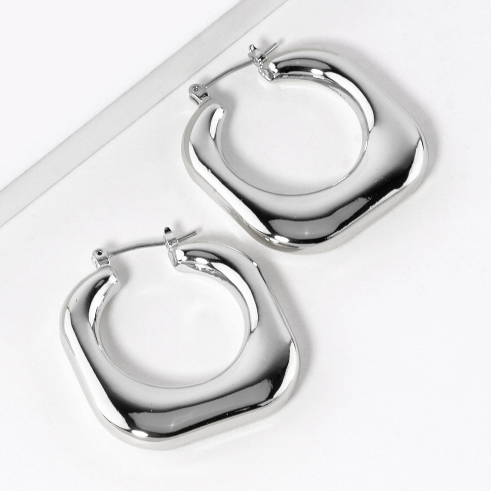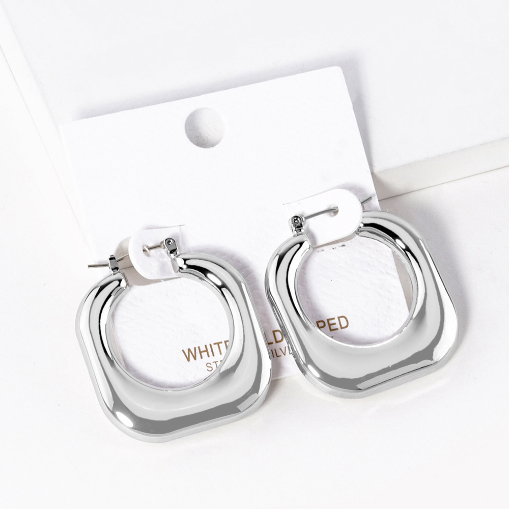 White Gold Dipped Square Metal Hoop Pin Catch Earrings