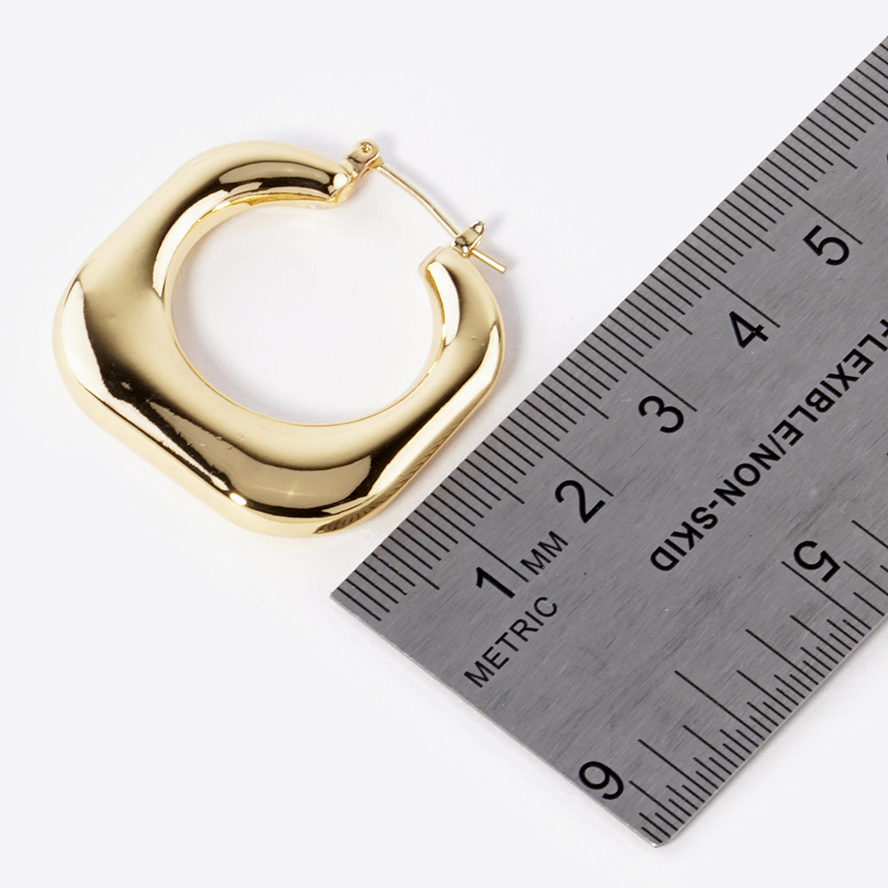 Gold Dipped Square Metal Hoop Pin Catch Earrings