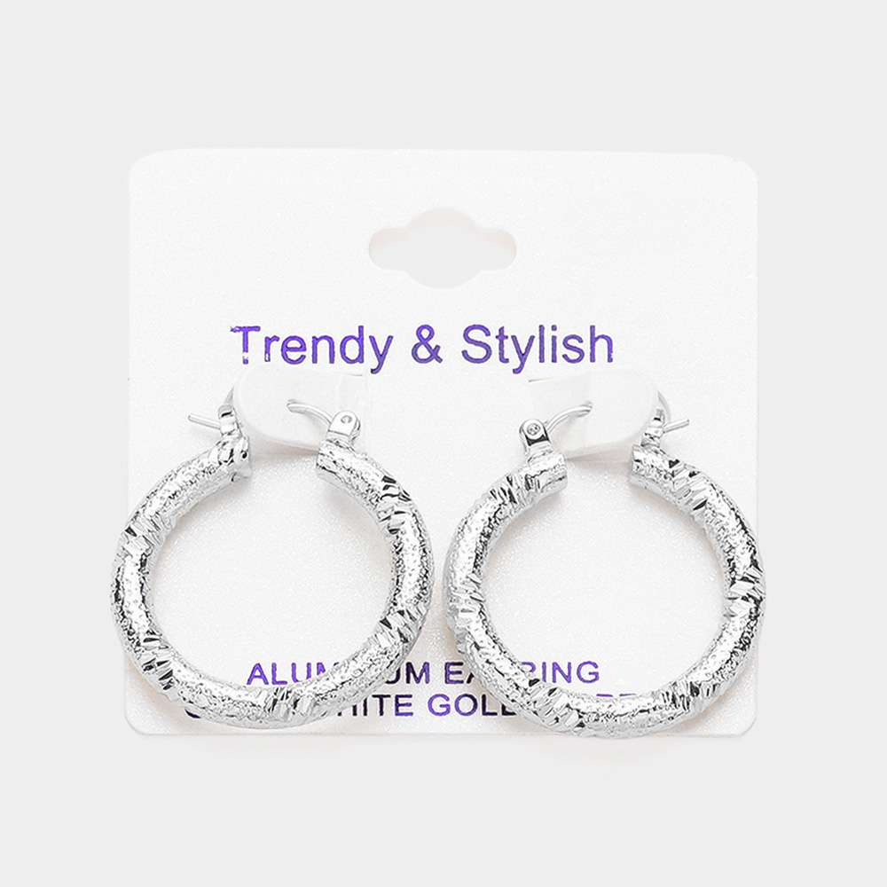 White Gold Dipped Textured Aluminum Hoop Earrings