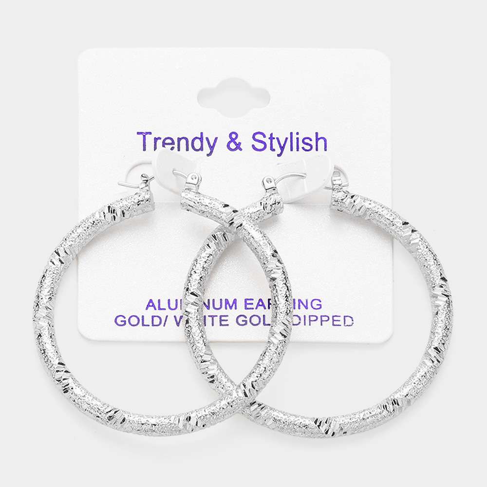 White Gold Dipped Textured Aluminum Hoop Earrings