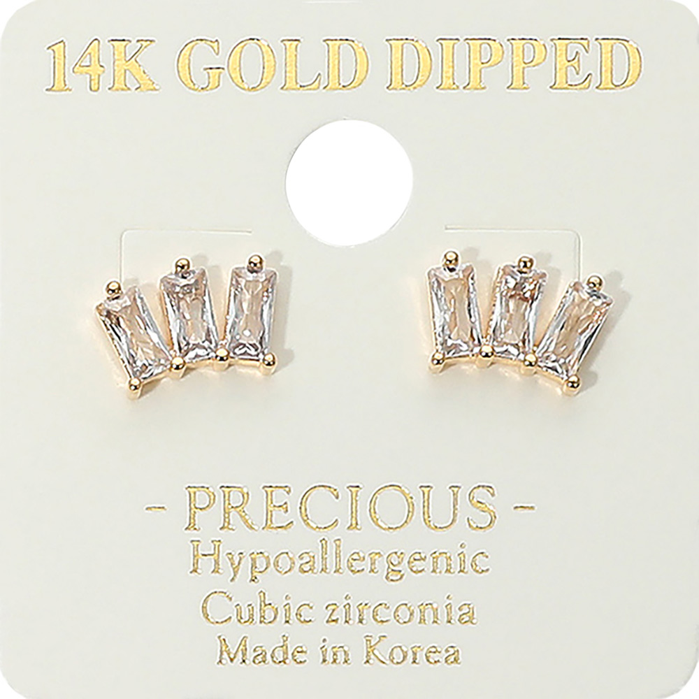 14K Gold Dipped Hypoallergenic Mini Triple Geometric CZ Stone Cluster Stud Earrings