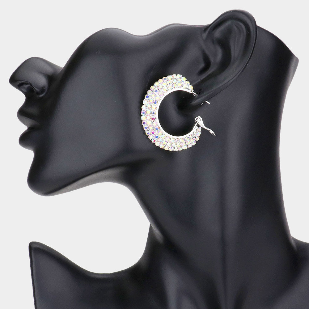 Crystal Rhinestone 1.5 Inch Hoop Earrings