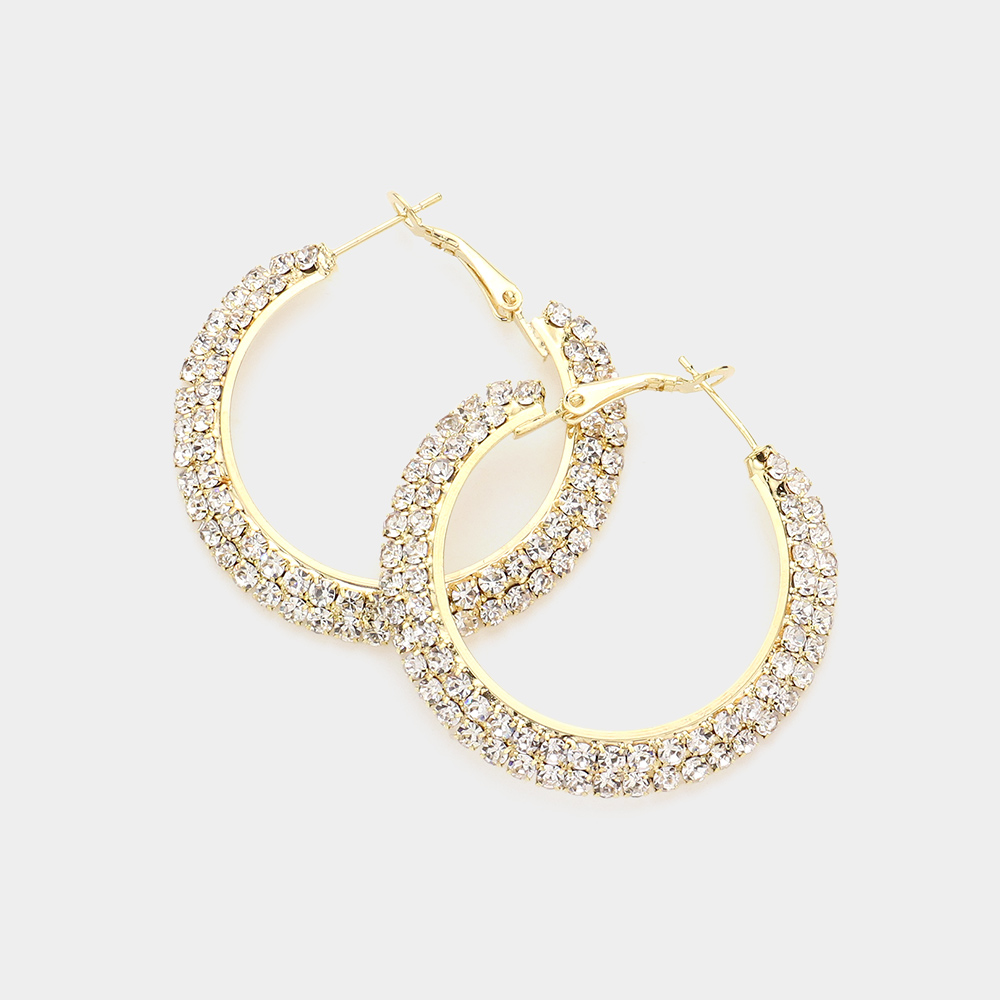 Crystal Rhinestone 1.6 Inch Hoop Earrings