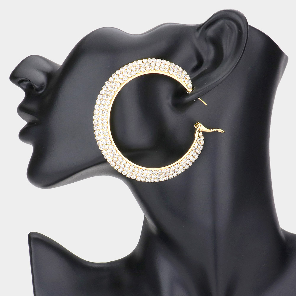 Crystal Rhinestone 2.5 Inch Hoop Earrings
