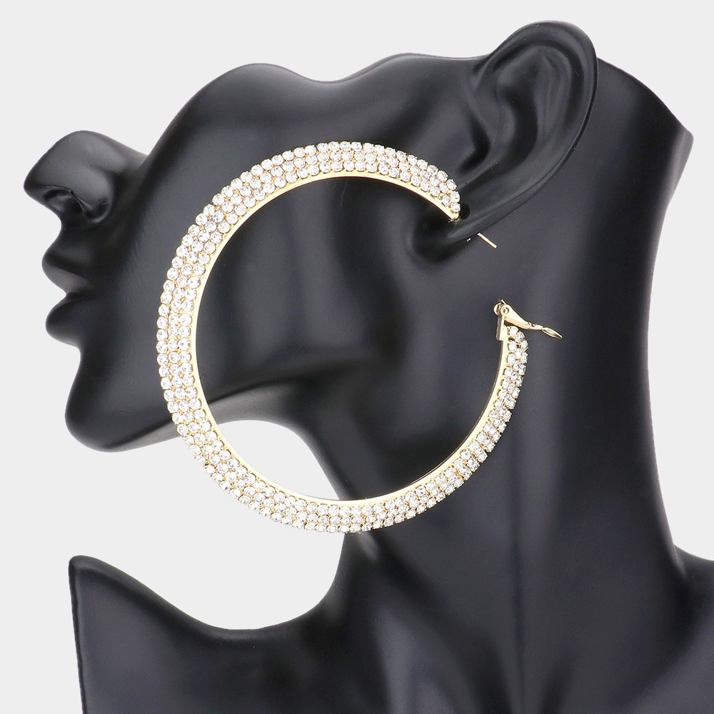 Crystal Rhinestone 3.25 Inch Hoop Earrings