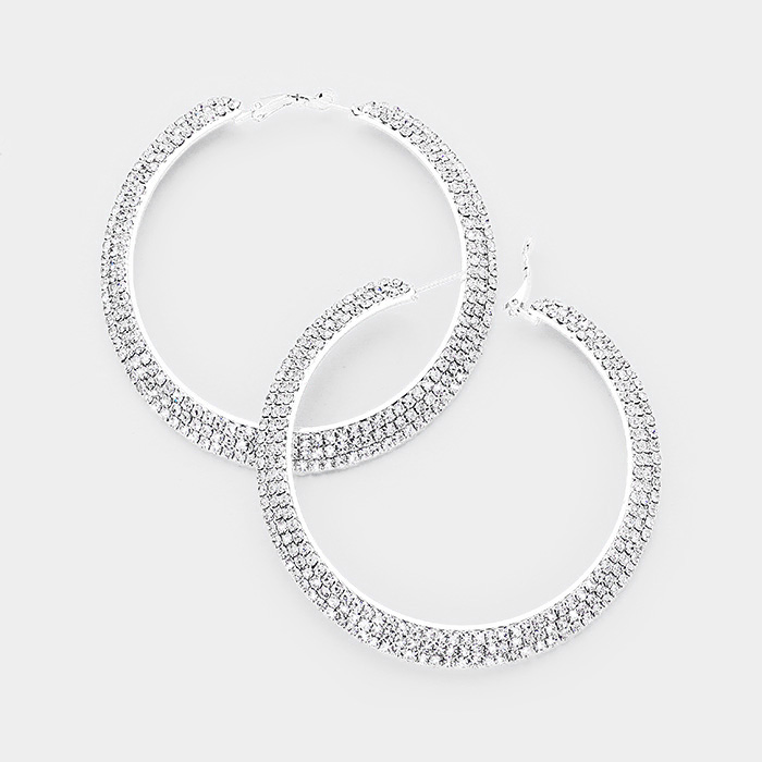 Crystal Rhinestone 3.25 Inch Hoop Earrings