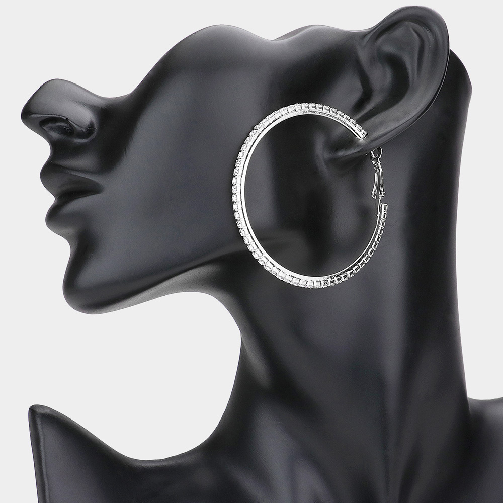 Stone Paved Huggie Hoop Accent Horsebit Drop Earrings