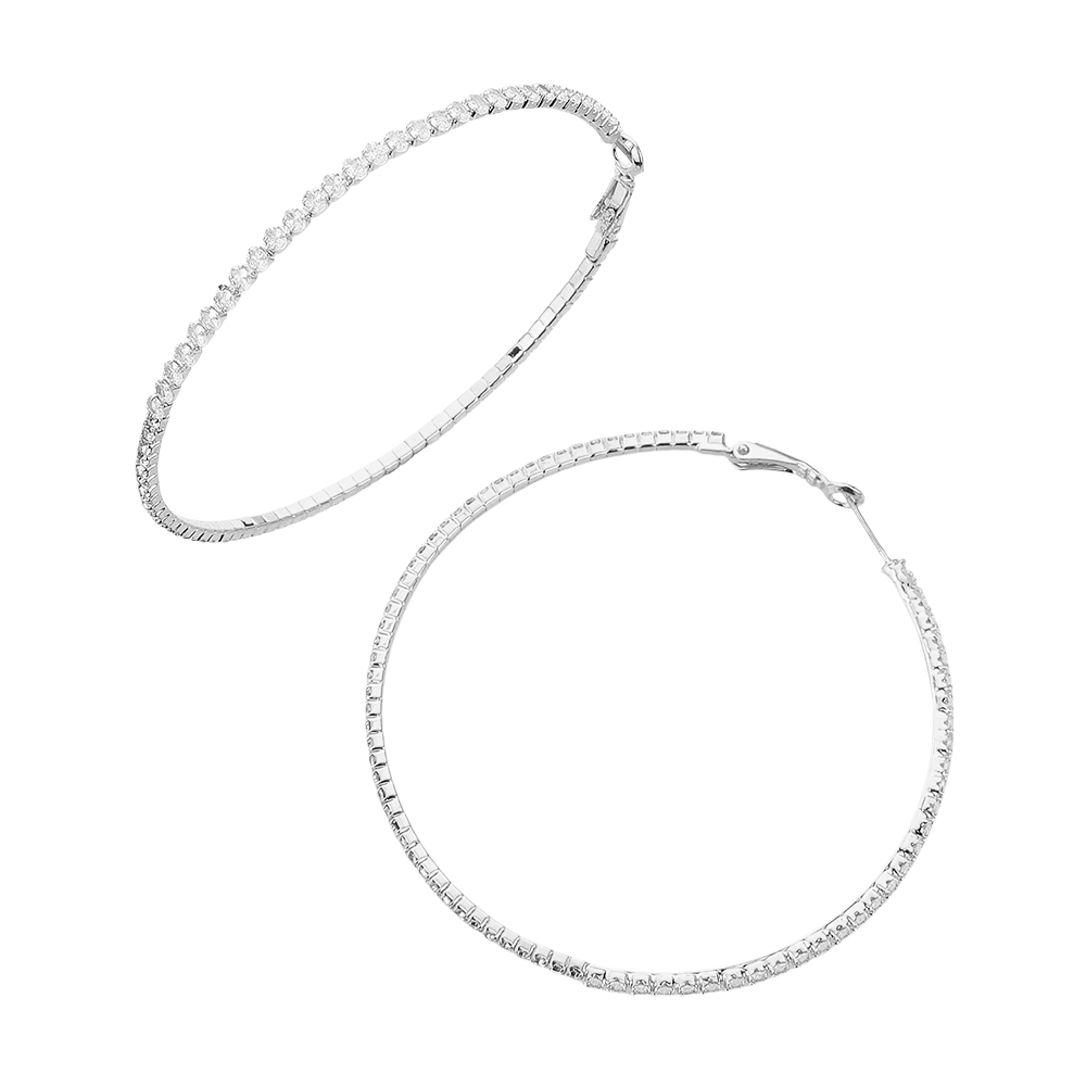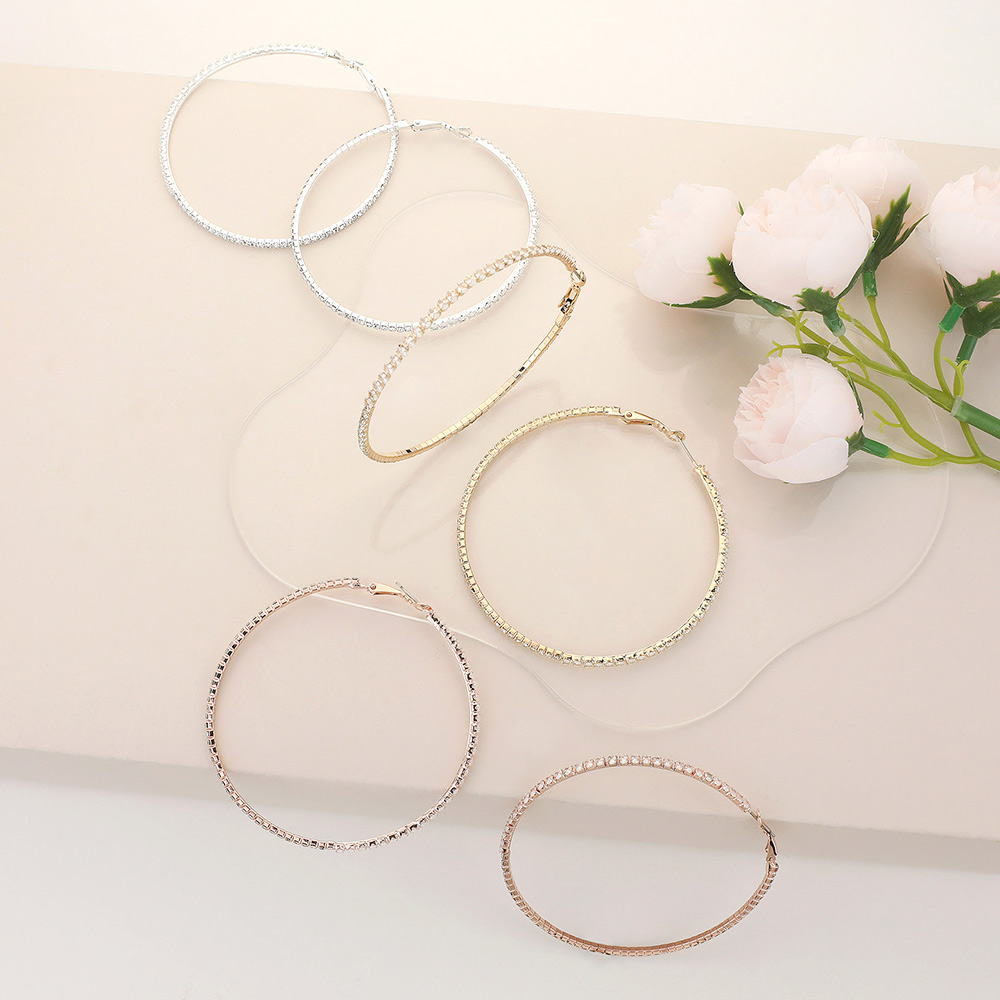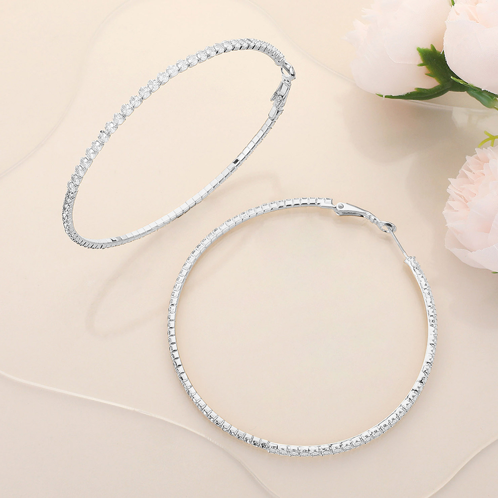 Details • Size : 2.8" X 2.8" • Omega Back • These slim hoop earrings showcase delicate gem accents for a refined and polished look. Designed to complement both casual and formal attire, they offer timeless elegance with a modern twist. • Lead and Nickel Compliant • CZ Cubic Zirconia