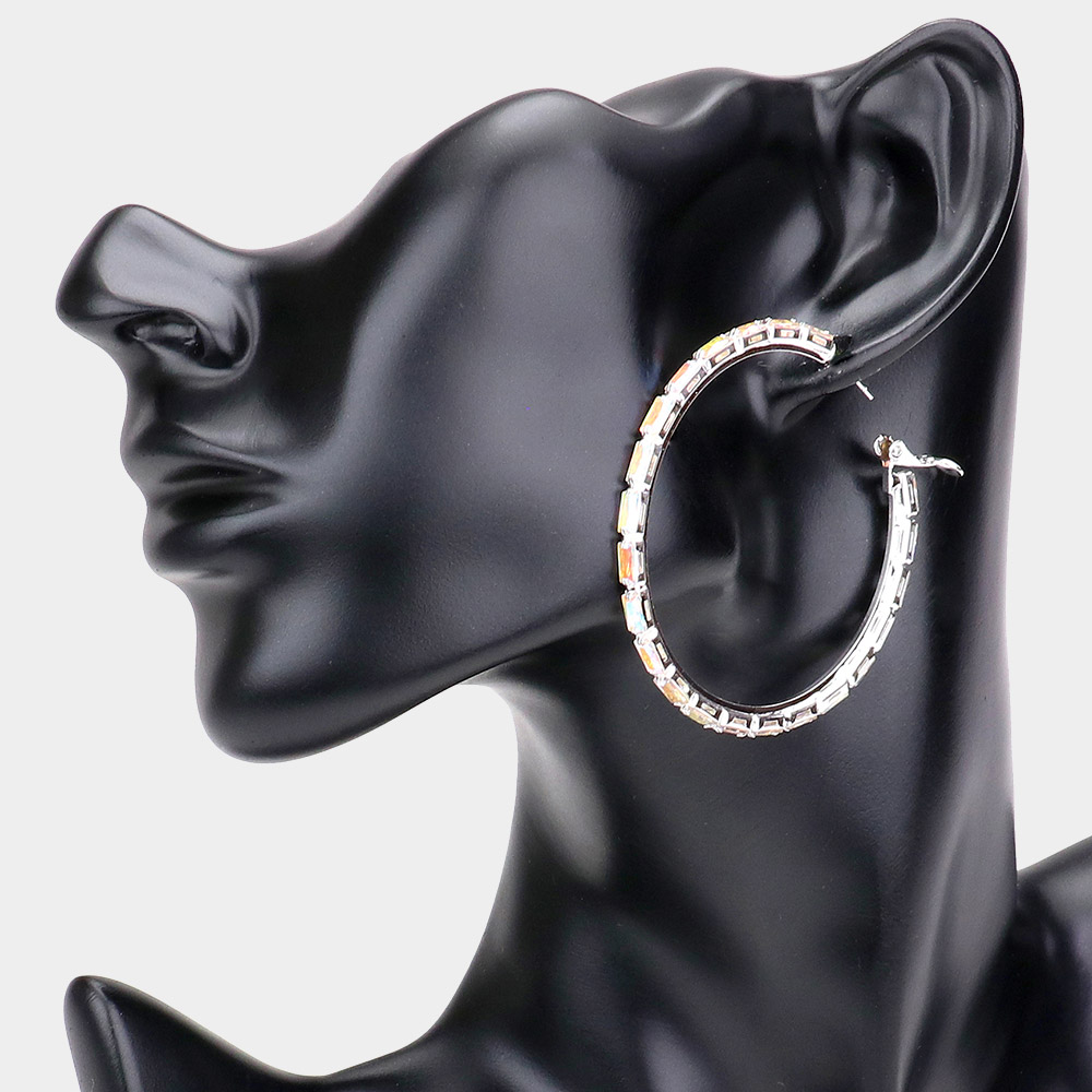 Rectangle Stone Cluster Hoop Earrings