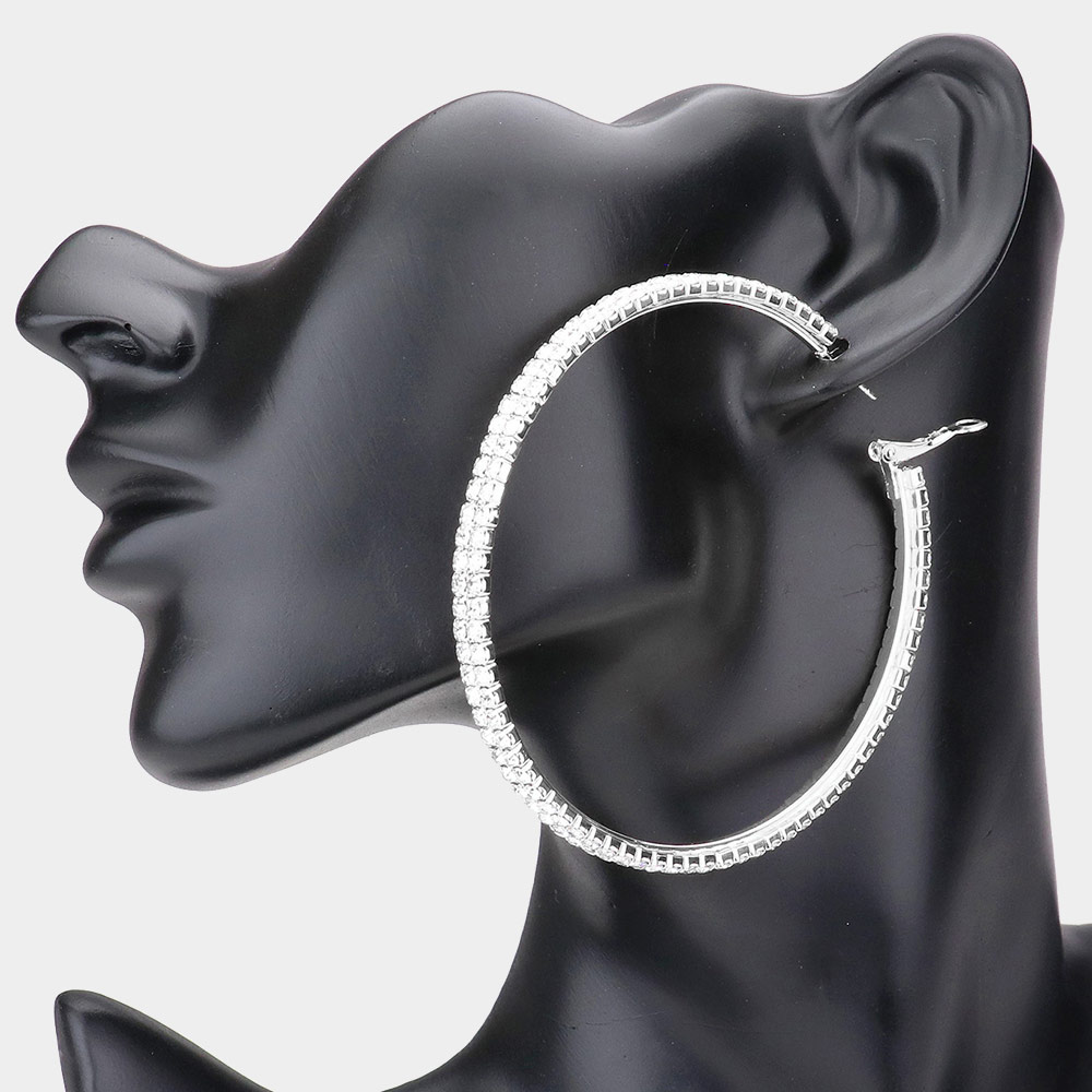 White Gold Dipped CZ Stone Paved Huggie Hoop Earrings