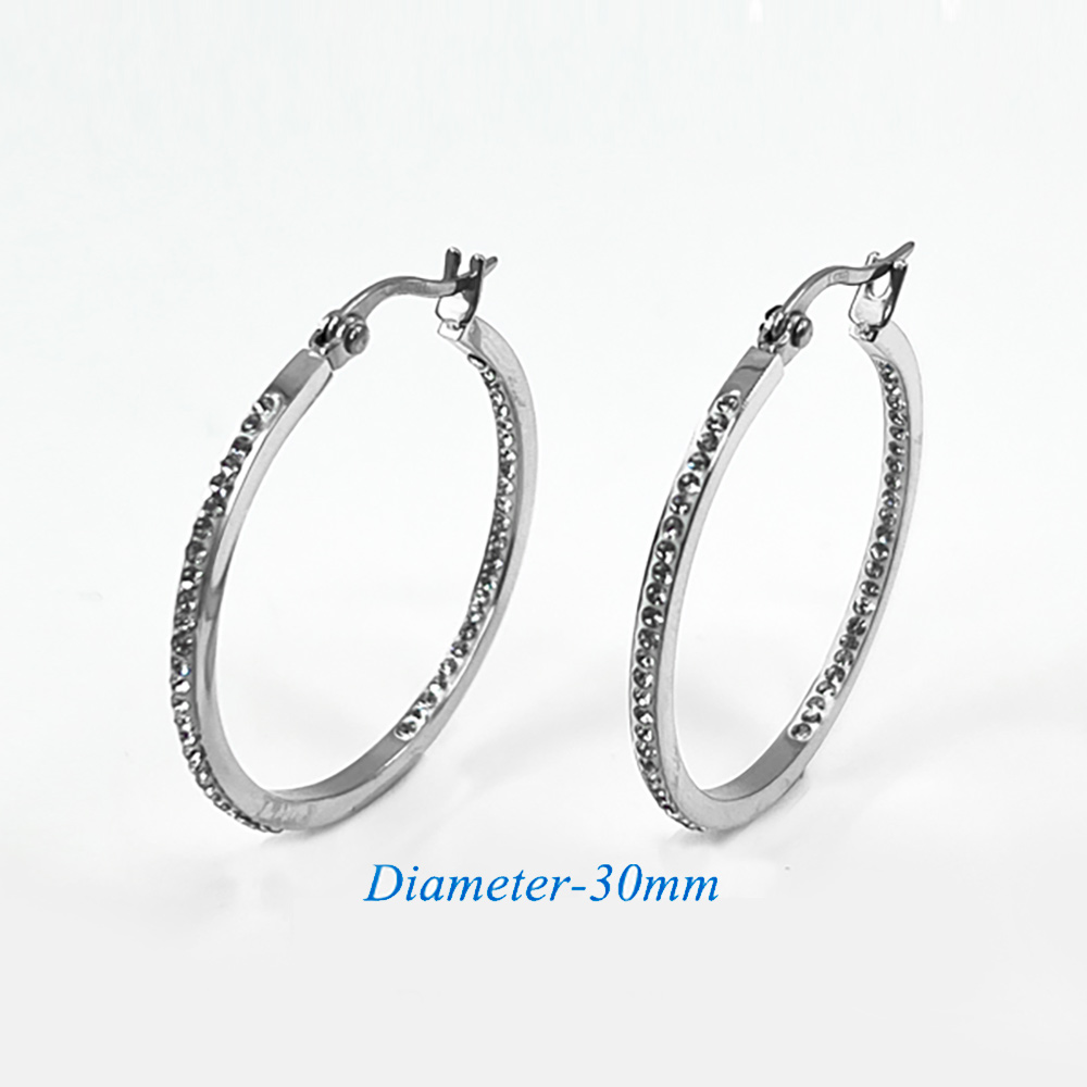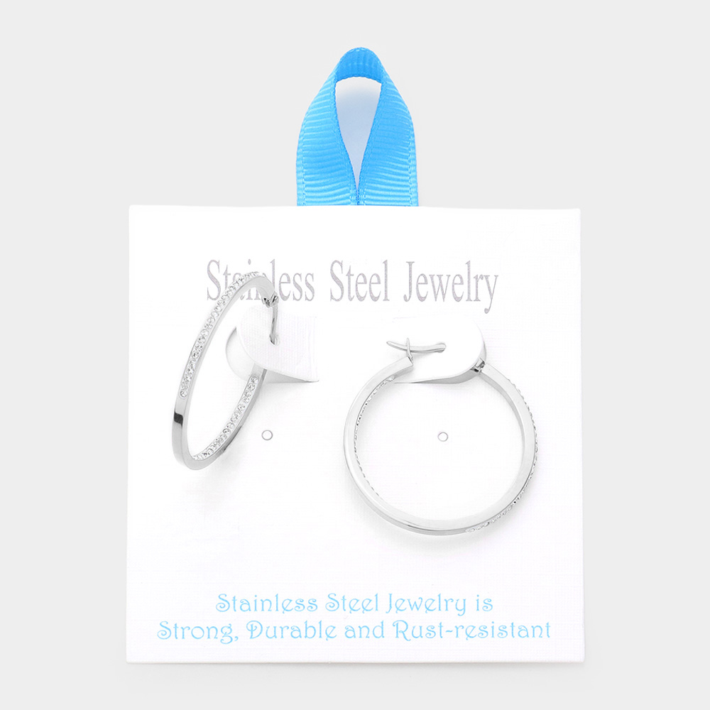 Stainless Steel 1.25 Inch Inside Out Rhinestone Hoop Pin Catch Earrings