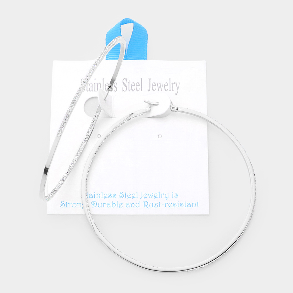 Stainless Steel 3.2 Inch Inside Out Rhinestone Hoop Pin Catch Earrings