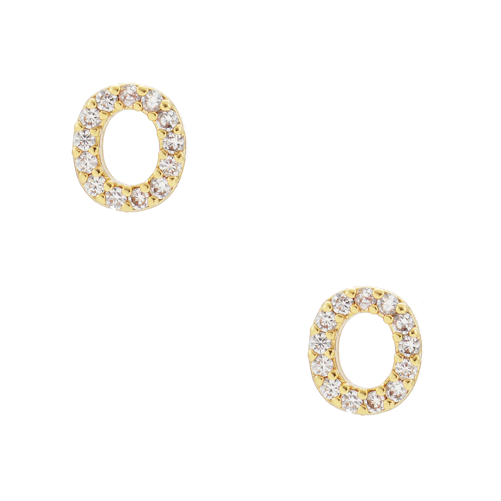 -O- Cubic Zirconia Initial Monogram Stud Earrings