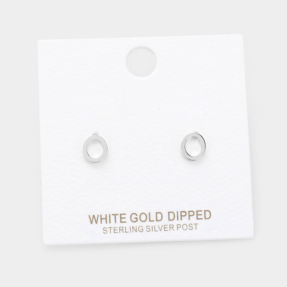 -I- White Gold Dipped Metal Initial Monogram Stud Earrings