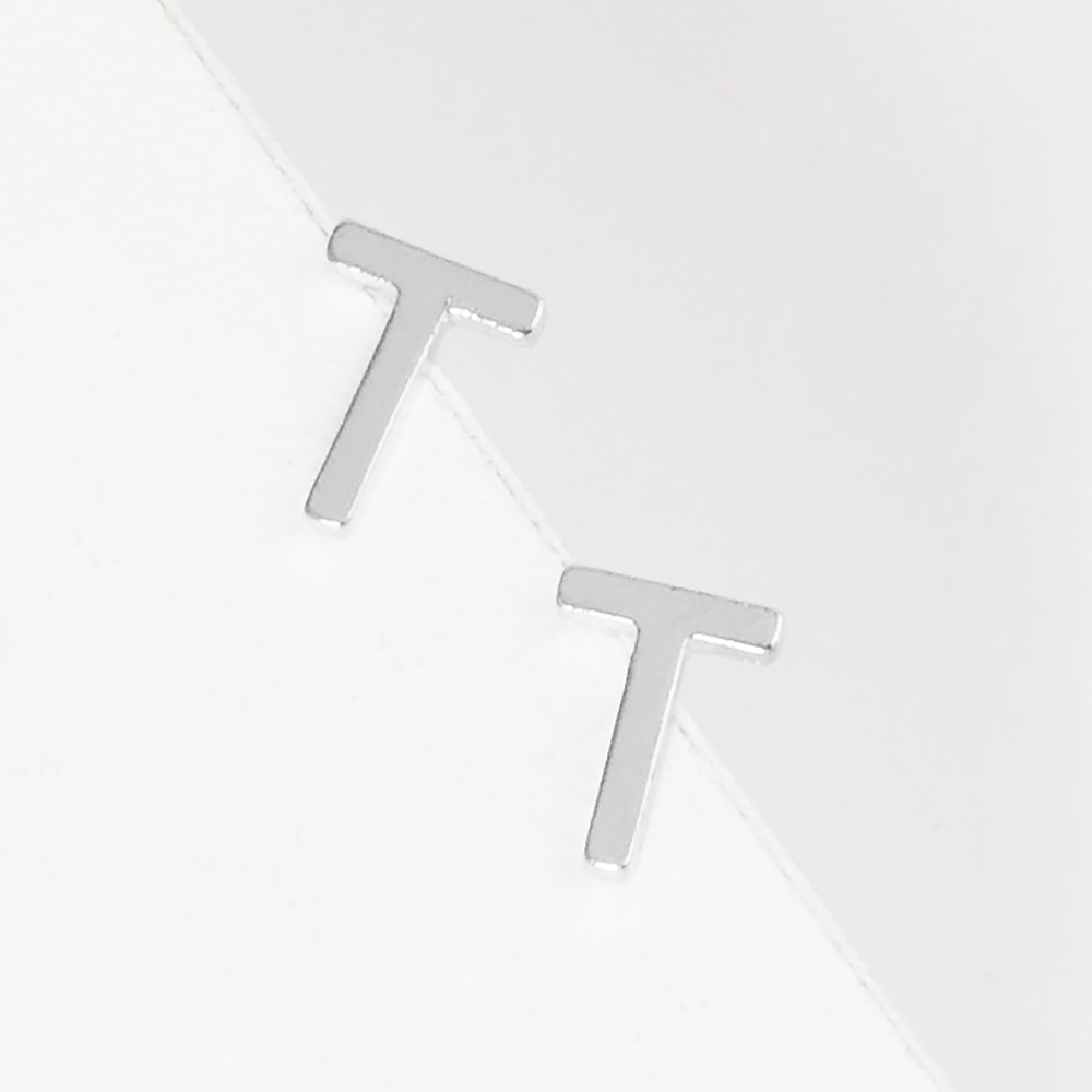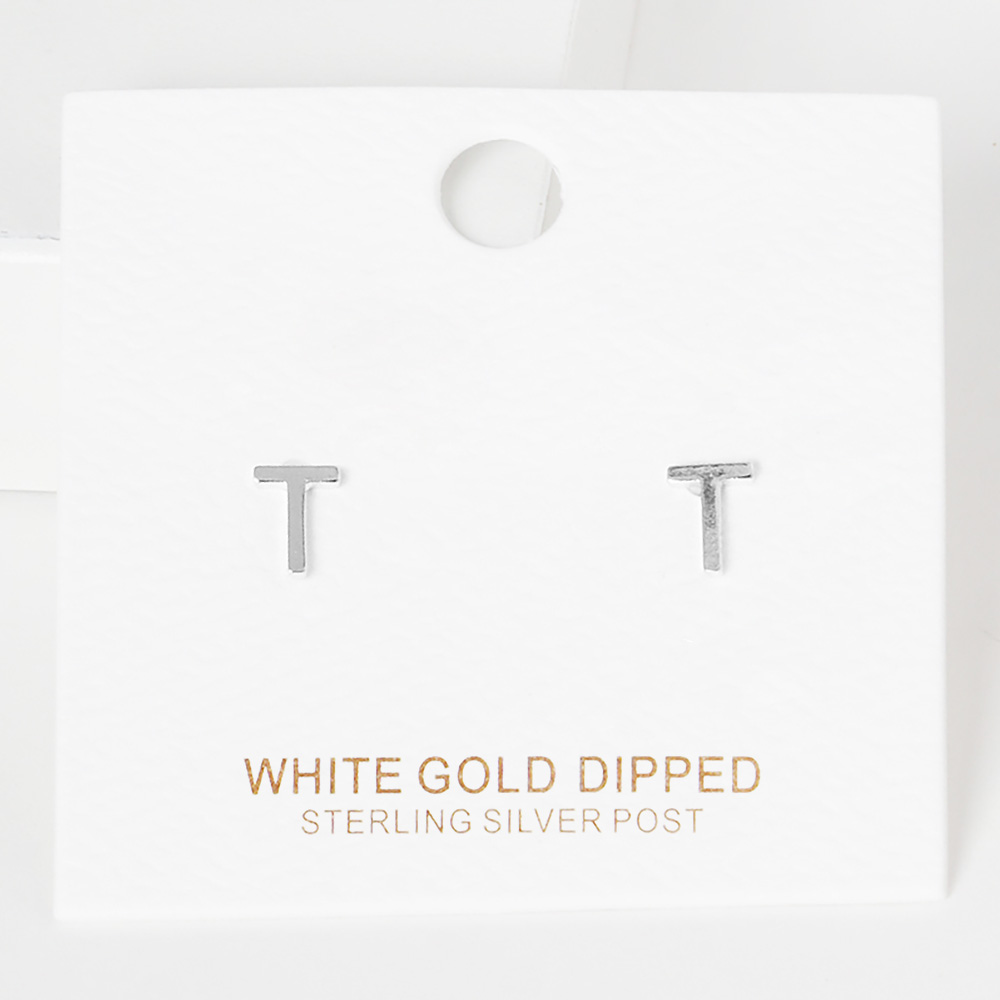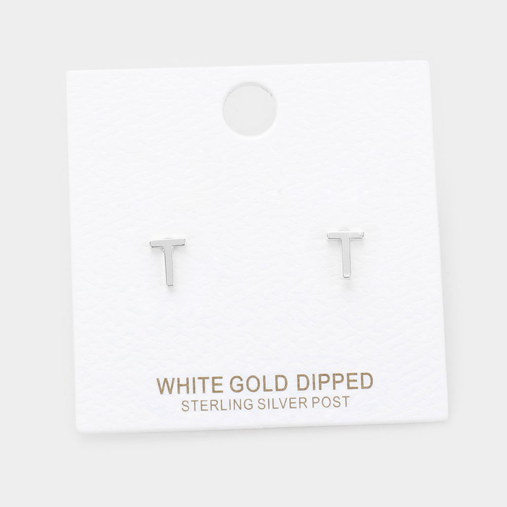 -I- White Gold Dipped Metal Initial Monogram Stud Earrings