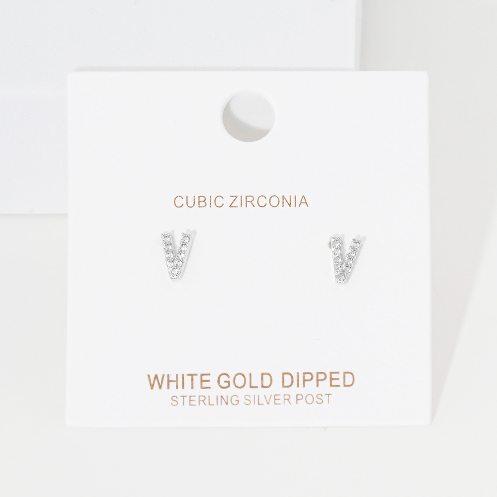 -V- Cubic Zirconia Initial Monogram Stud Earrings