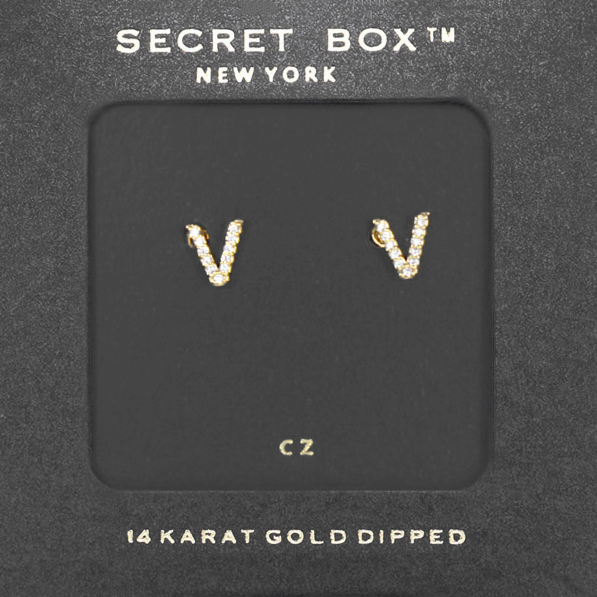 -V- Secret Box _ 14K Gold Dipped CZ Initial Monogram Stud Earrings