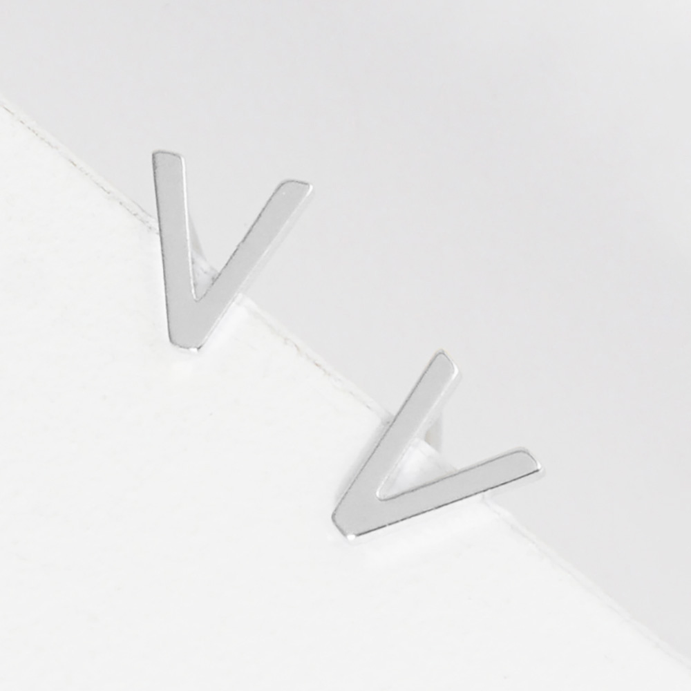 -Y- White Gold Dipped Metal Initial Monogram Stud Earrings
