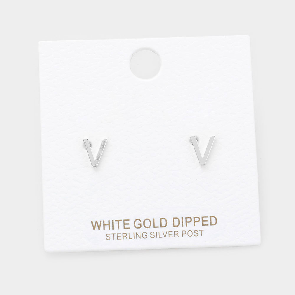 -V- Gold Dipped Metal Initial Monogram Stud Earrings