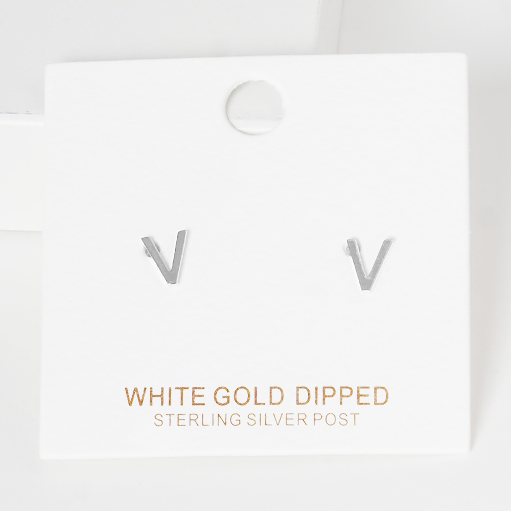 -I- White Gold Dipped Metal Initial Monogram Stud Earrings