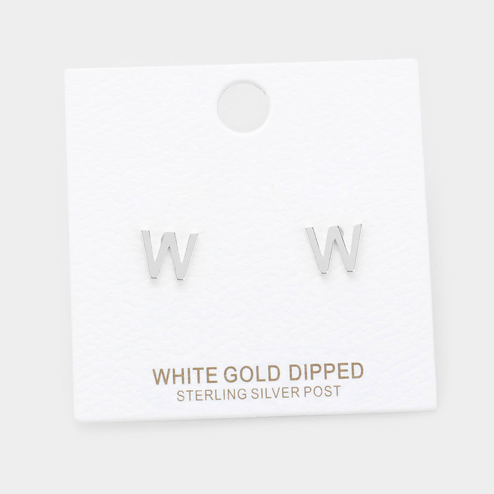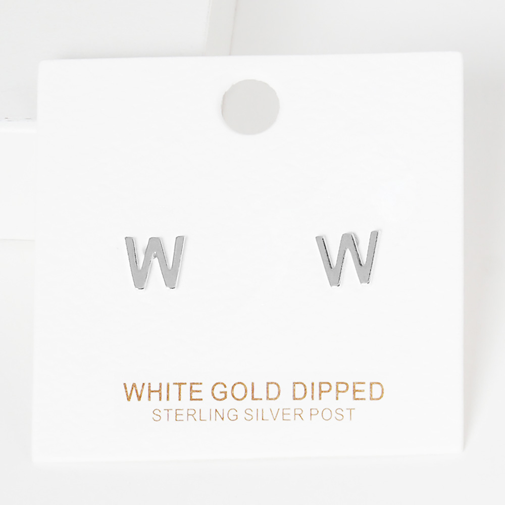 -I- White Gold Dipped Metal Initial Monogram Stud Earrings