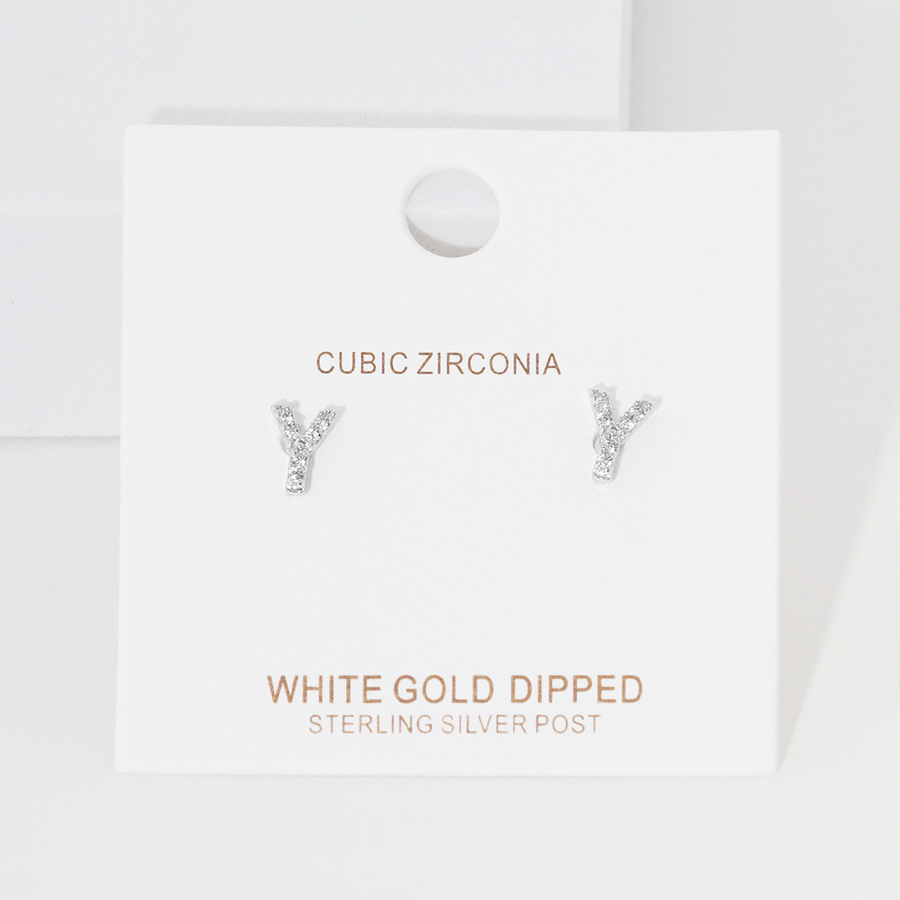 -Y- Cubic Zirconia Initial Monogram Stud Earrings