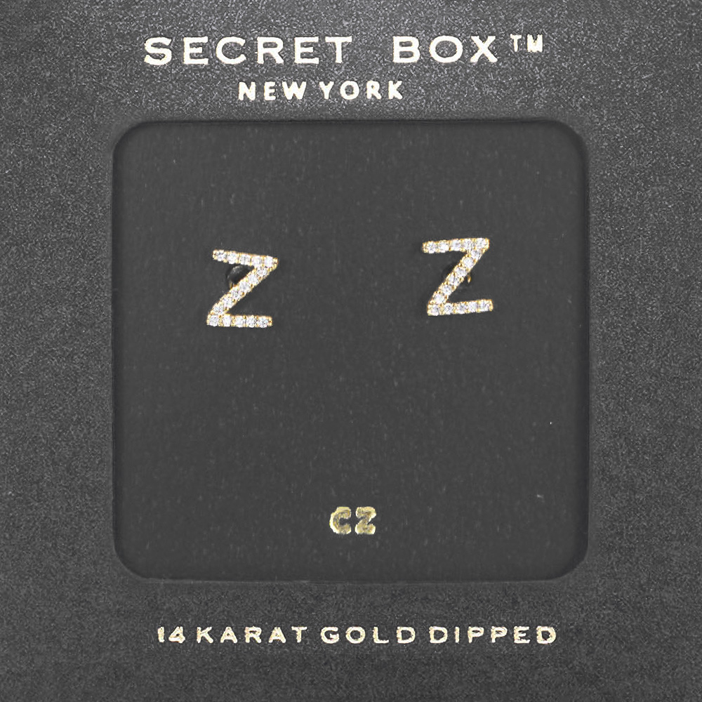 -Z- Secret Box _ 14K Gold Dipped CZ Initial Monogram Stud Earrings