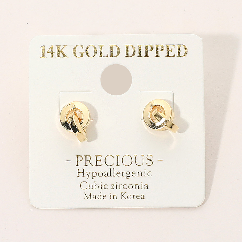 Details • Size : 0.25" X 0.4" • Post Back • Finish your look with these knot stud earrings featuring a smooth, sculptural design for understated elegance. Lightweight and comfortable for daily wear, they complement both casual outfits and polished ensembles, making them a versatile accessory choice or thoughtful gift for effortless, modern style. • Gold Dipped • Hypoallergenic • Made In Korea
